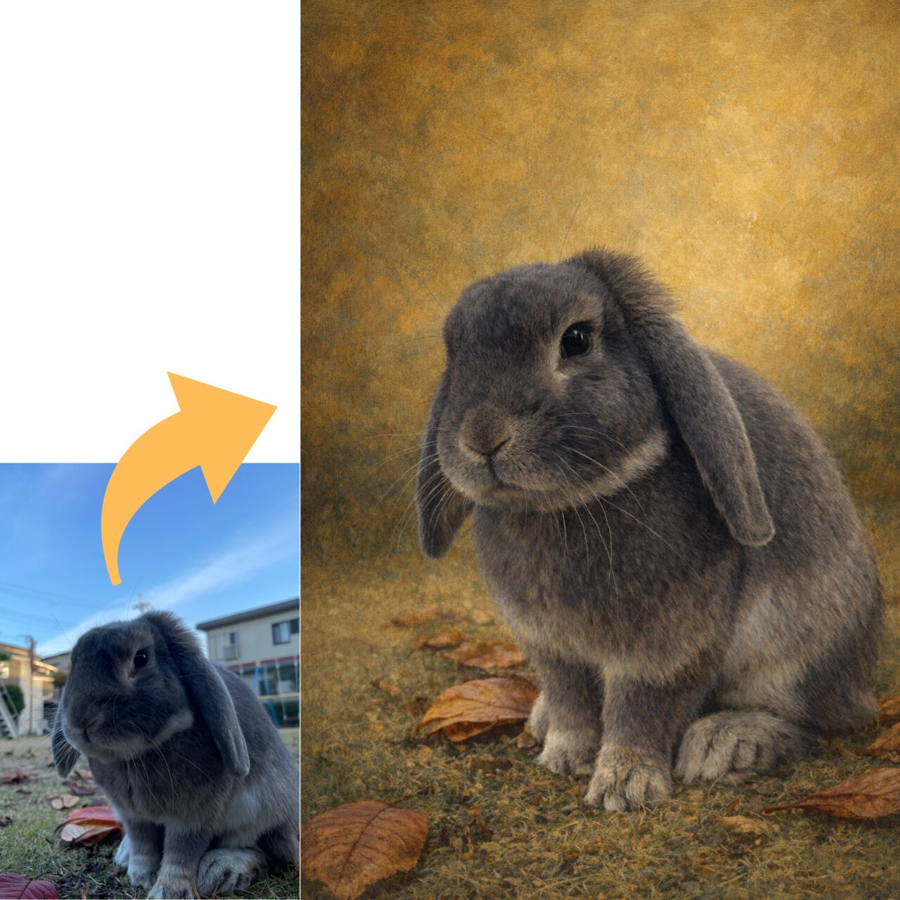 大切な家族であるペットの写真を、温かみのある油絵風に加工し、